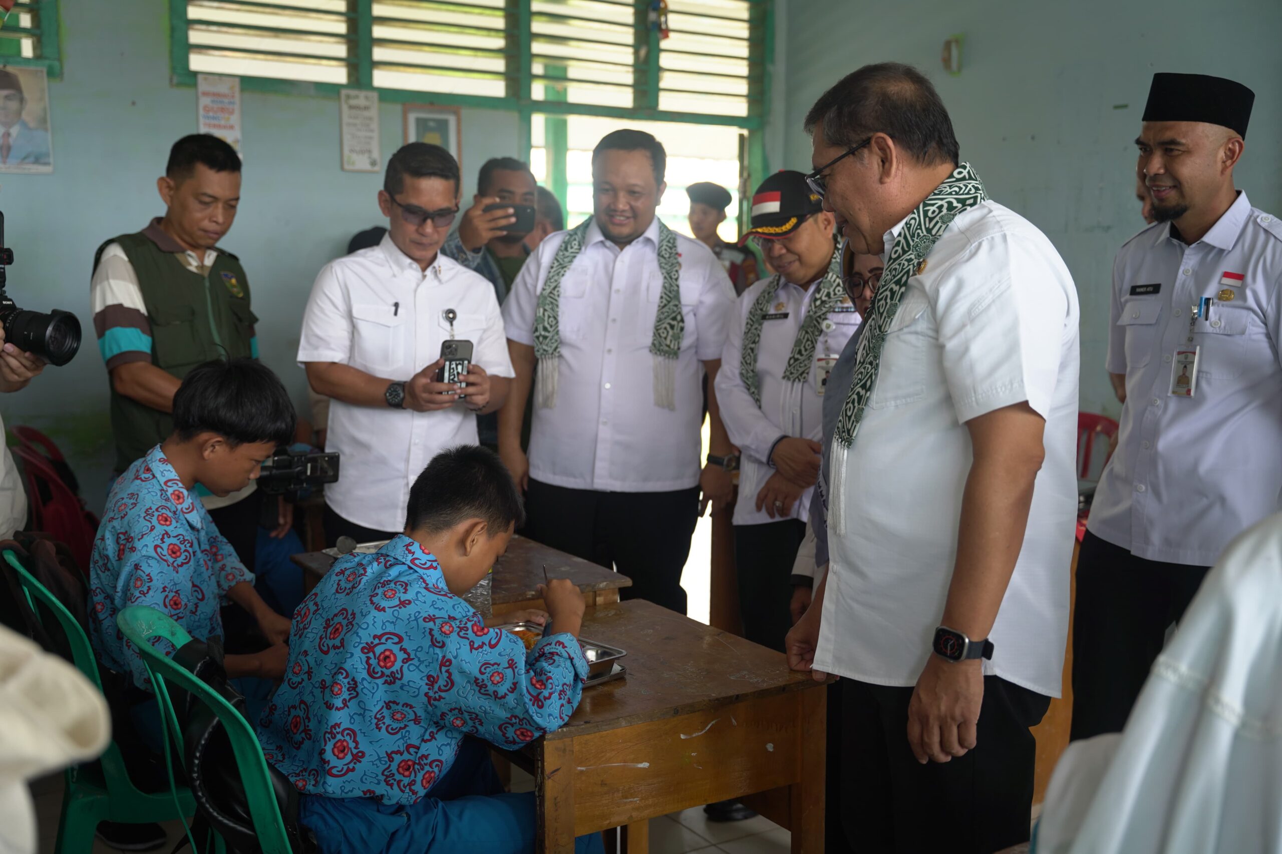 Setelah peninjauan dapur, ia kemudian memantau pelaksanaan MBG di SD Negeri 73 Kota Bengkulu. Para murid yang berjumlah 111 orang menyambut kotak makan dengan suka cita. Menu yang disajikan berupa nasi, chicken katsu, tempe orek, capcay, buah jeruk dan susu.